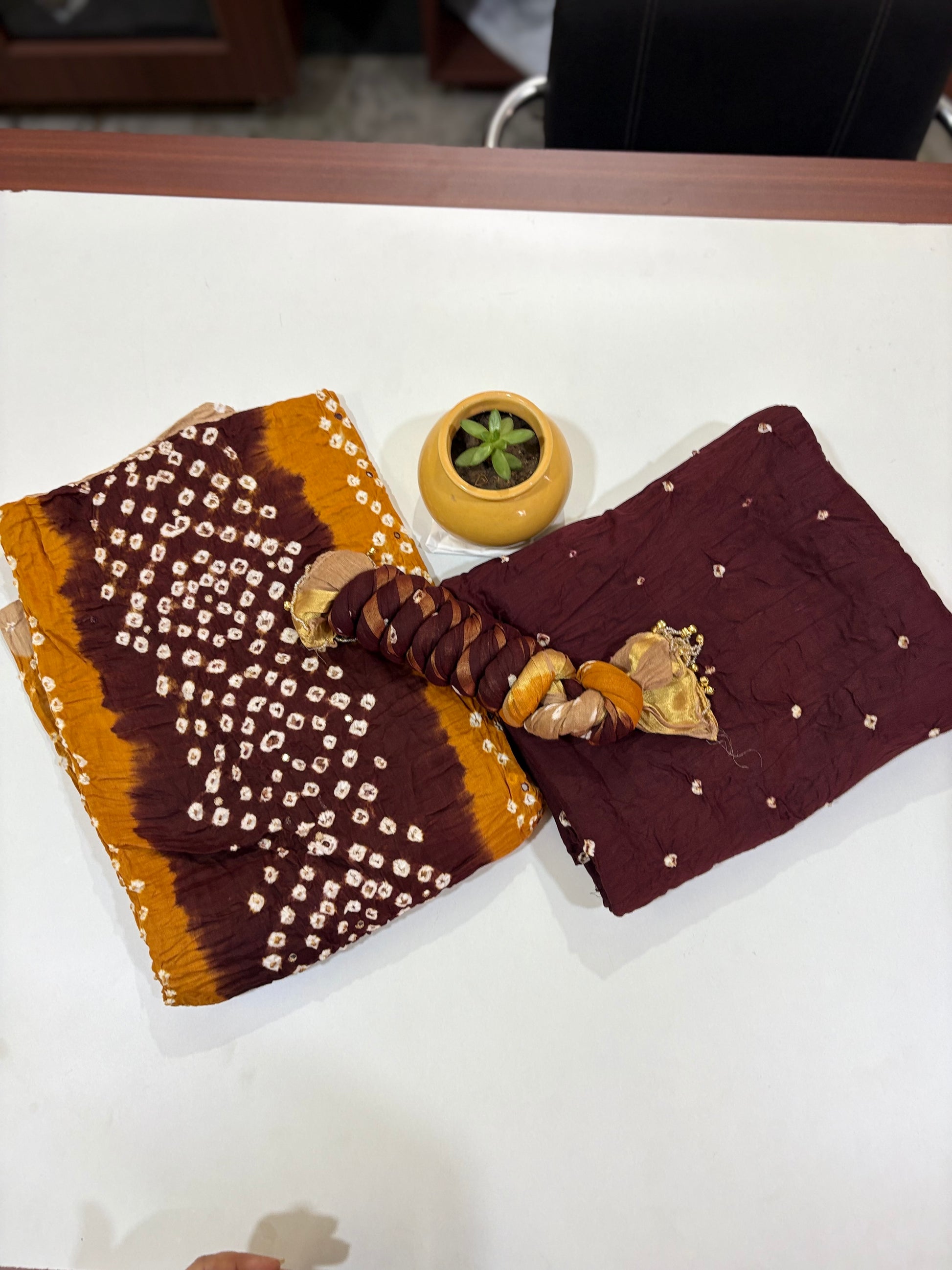 Black and Mustard | Three Piece | Bandhini | Unstitched Cotton Suit Set